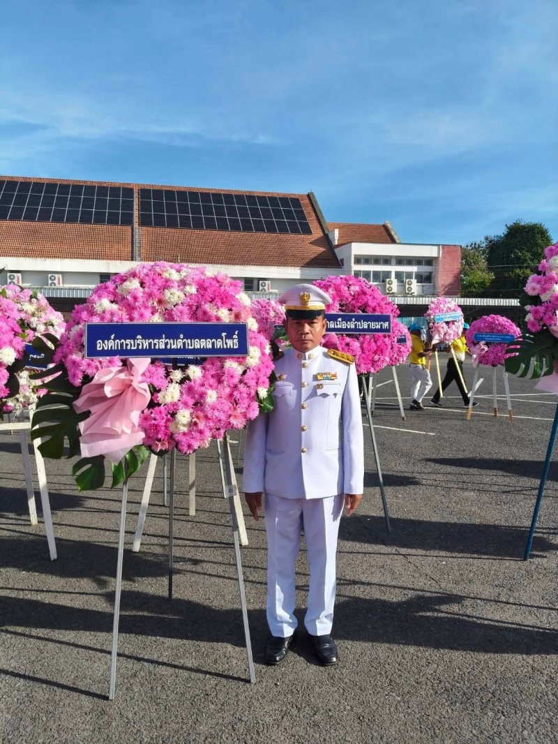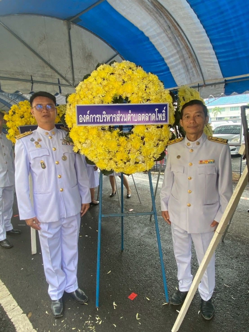 ร่วมน้อมส่งเสด็จสู่สวรรคาลัย สมเด็จพระนางเจ้าสิริกิต์ พระบรมราชินีนาถ พระบรมราชชนนีพันปีหลวง ณ วัดกลางพระอารามหลวง จังหวัดบุรีรัมย์ องค์การบริหารส่วนตำบลตลาดโพธิ์นำโดยนายจำลอง ใยไธสง นายกองค์การบริห