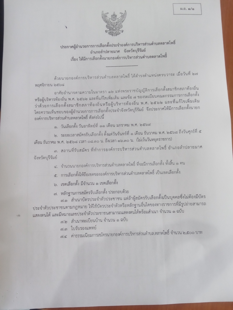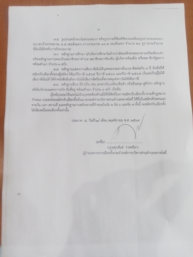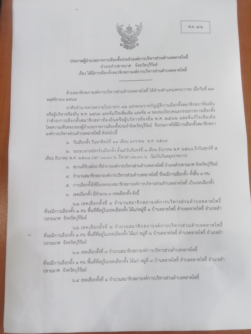 ประกาศผู้อำนวยการเลือกตั้งประจำองค์การบริหารส่วนตำบลตลาดโพธิ์