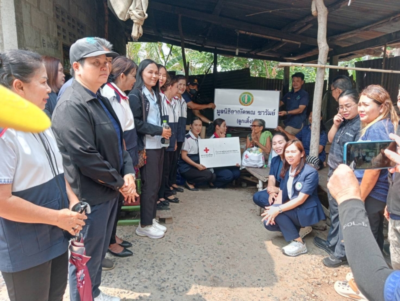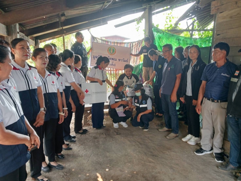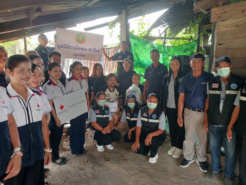 นายกพร้อมคณะมูลนิธิอาณัตพณซารัมย์(ลูกเติ้ง)คณะกิ่งกาชาดอำเภอลำปลายมาศและรพสต.ตลาดโพธิ์ลงพื้นที่9หมู่บ้านเพื่อมอบถุงยังชีพให้กับผู้สูงอายุคนพิการผู้ด้อยโอกาส