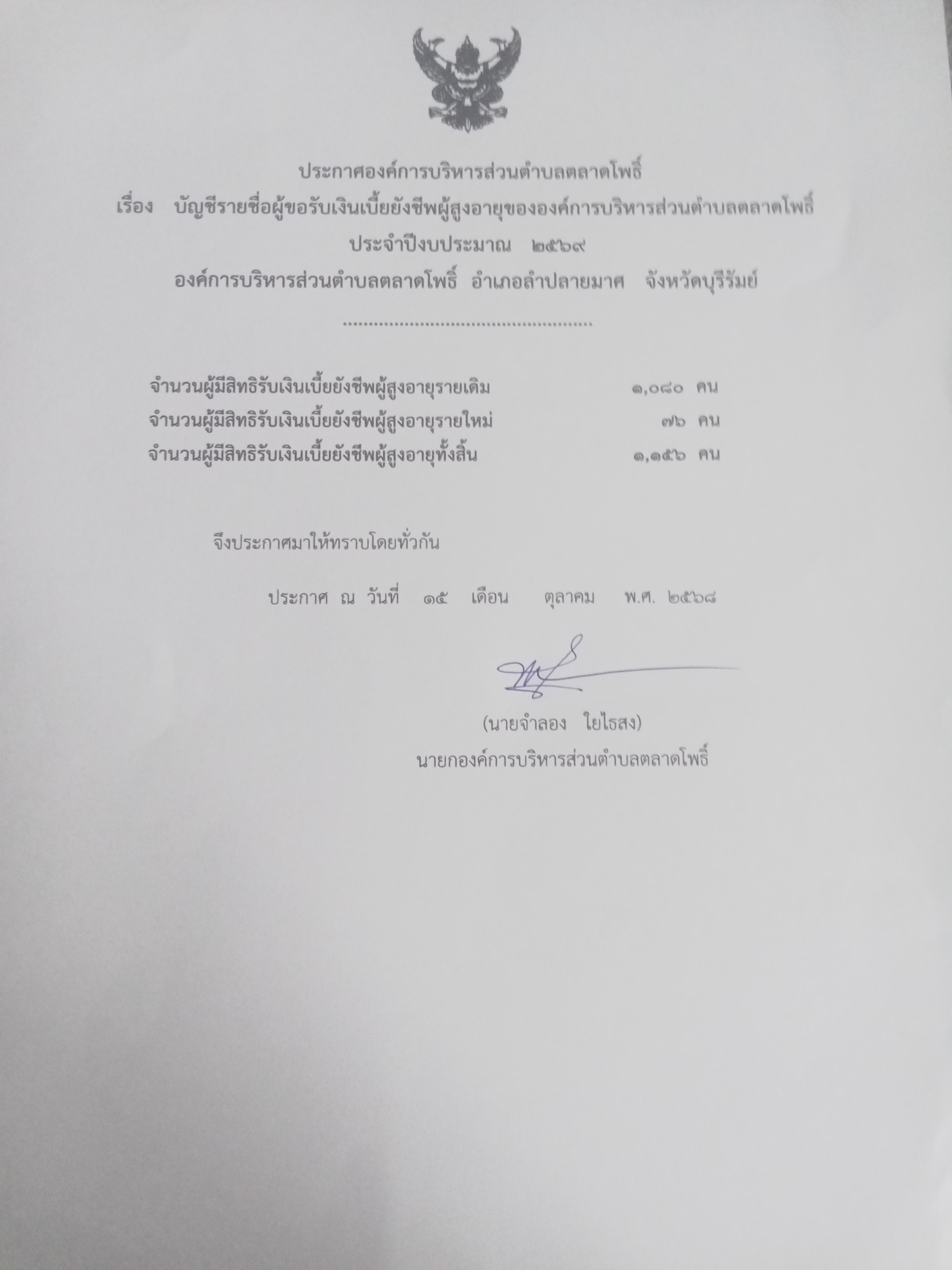 บัญชีรายชื่อขอรับเงินเบี้ยยังชีพผู้สูงอายุขององค์การบริหารส่วนตำบลตลาดโพธิ์