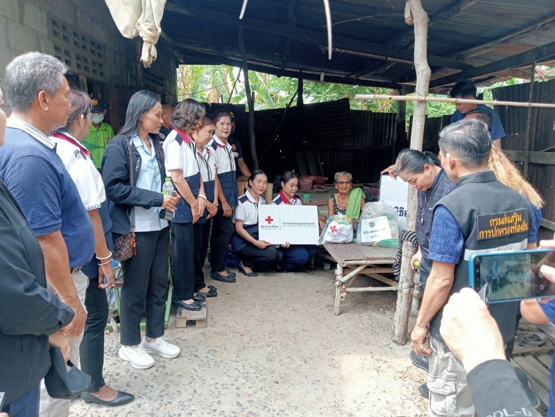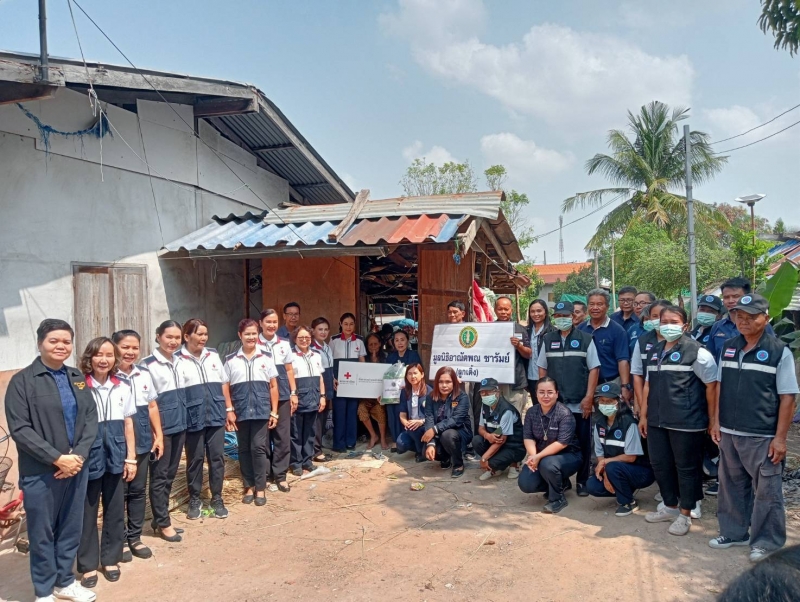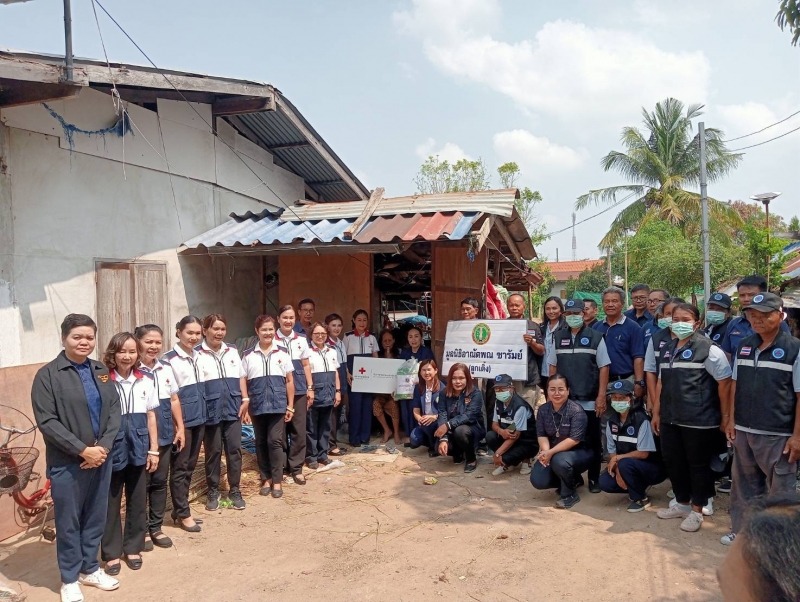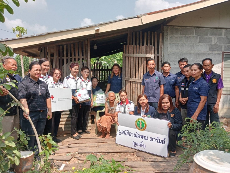 นายกพร้อมคณะมูลนิธิอาณัตพณซารัมย์(ลูกเติ้ง)คณะกิ่งกาชาดอำเภอลำปลายมาศและรพสต.ตลาดโพธิ์ลงพื้นที่9หมู่บ้านเพื่อมอบถุงยังชีพให้กับผู้สูงอายุคนพิการผู้ด้อยโอกาส