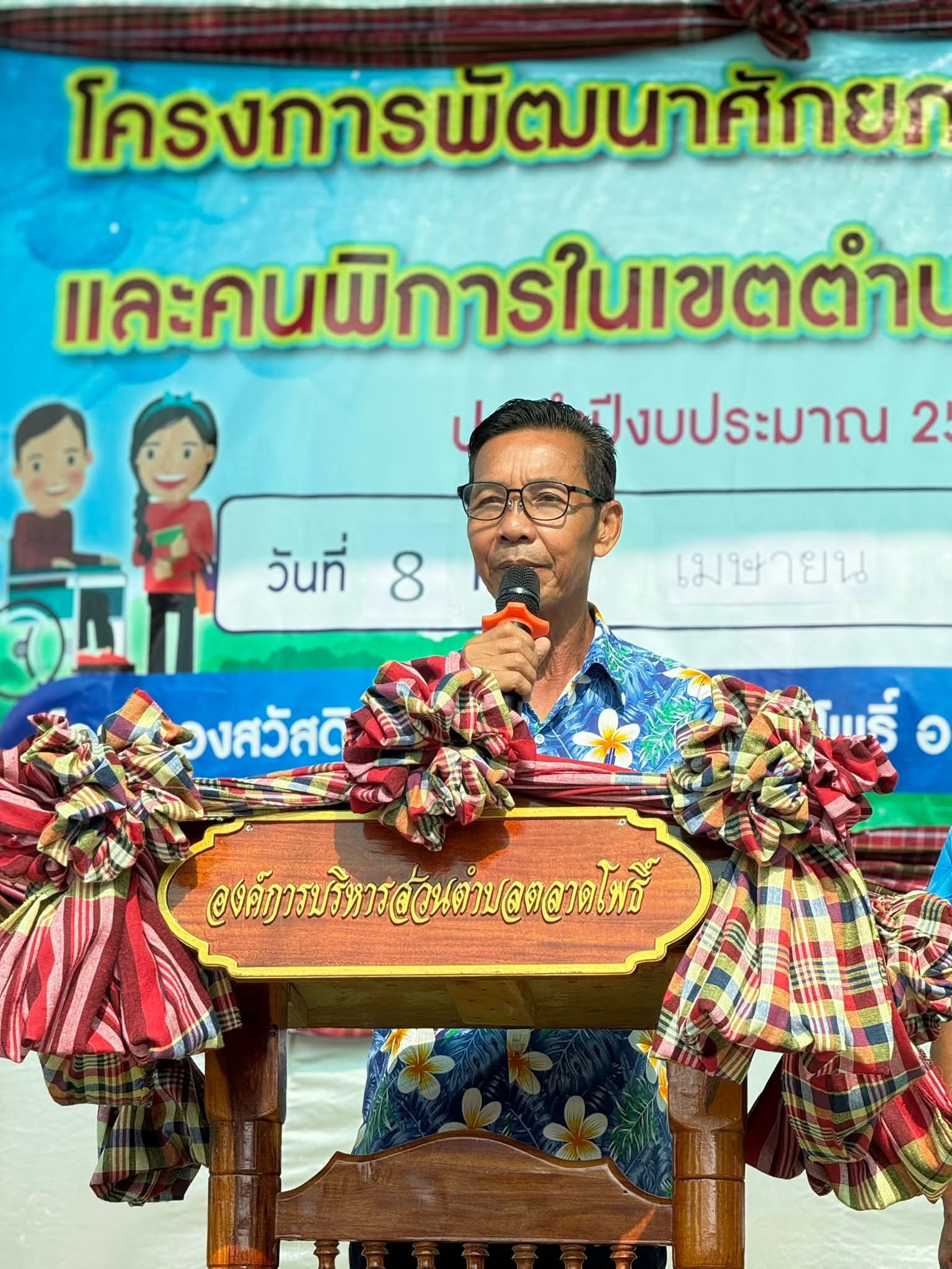ท่านนายกองค์การบริหารส่วนตำบลตลาดโพธิ์เปิดโครงการพัฒนาศักยภาพผู้สูงอายุและคนพิการในเขตตำบลตลาดโพธิ์ วันที่ 8 เมษายน 2569เวลา 09.00 น. นายจำลอง ใยไธสง นายกองค์การบริหารส่วนตำบลตลาดโพธิ์ เป็นประธานเ
