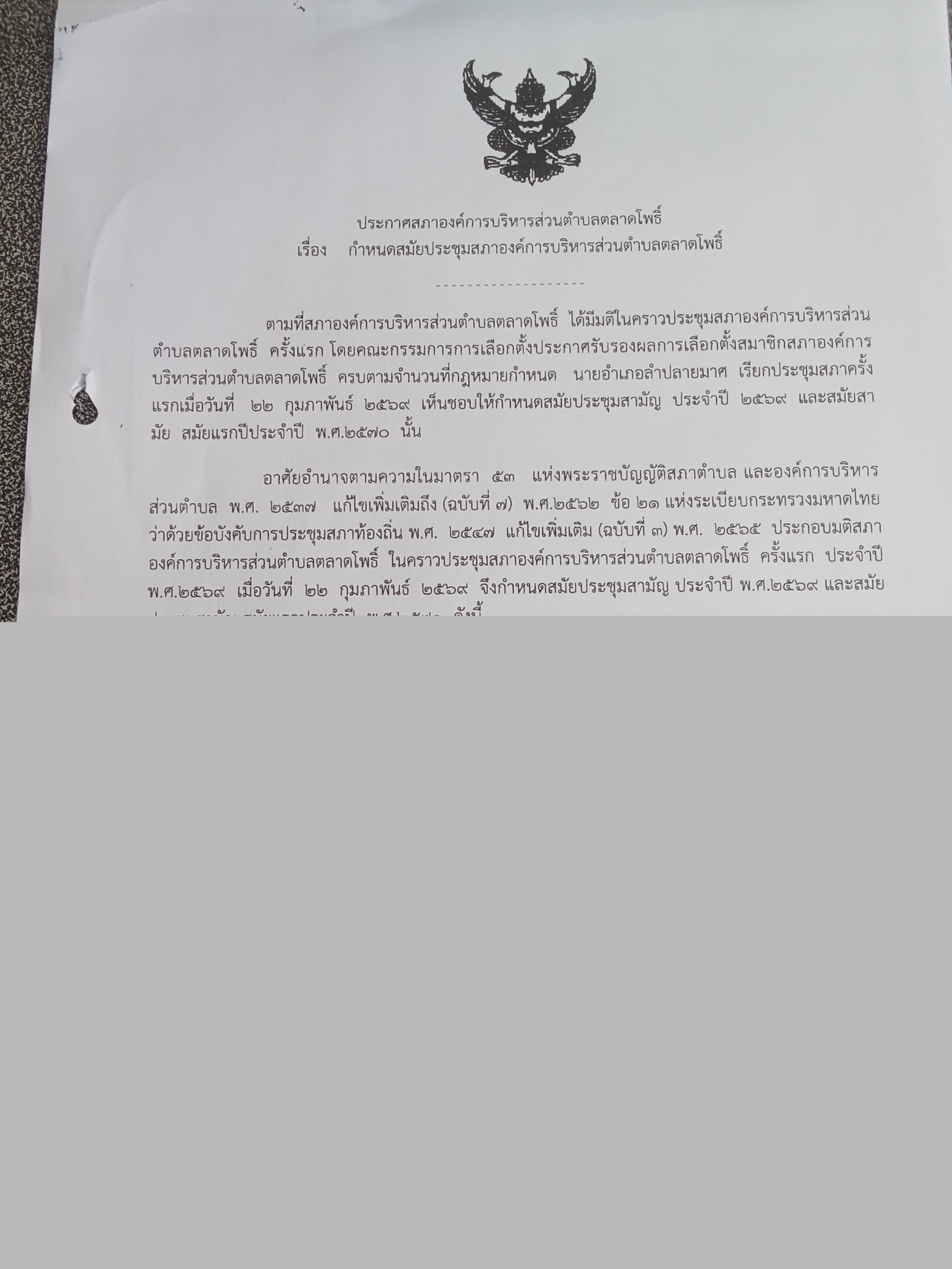 เรียกประชุมสภาองค์การบริหารส่วนตำบลตลาดโพธิ์